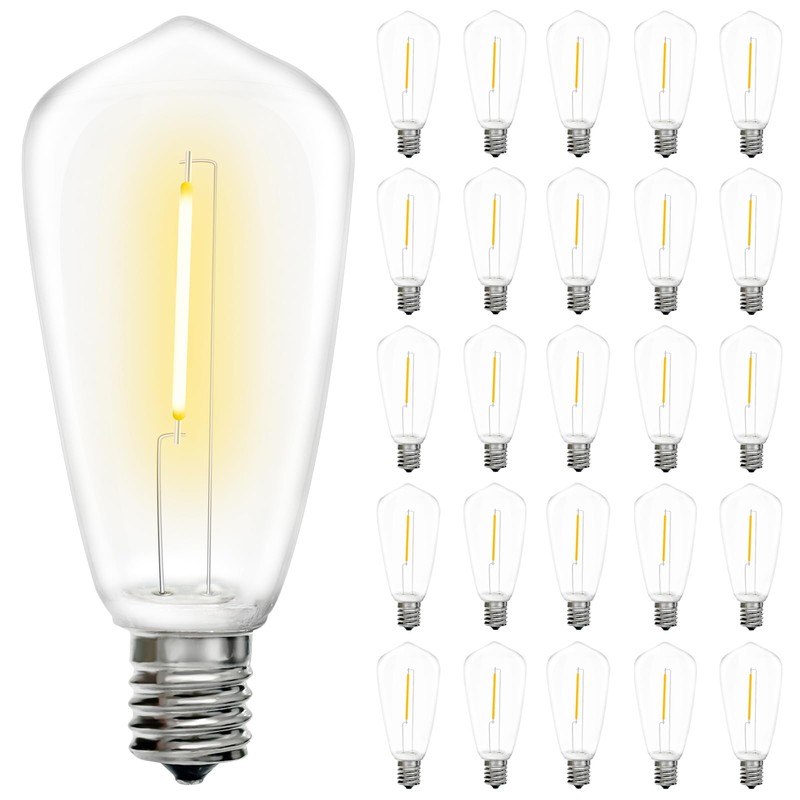 - E17 Intermediate Base: 25Pack vintage ST40 LED string light bulbs use a standard E17 Intermediate Base, suitable for outdoor light strings with E17 base, and are the best replacement bulbs for outdoor string lights in gardens, backyards, balconies, and terraces