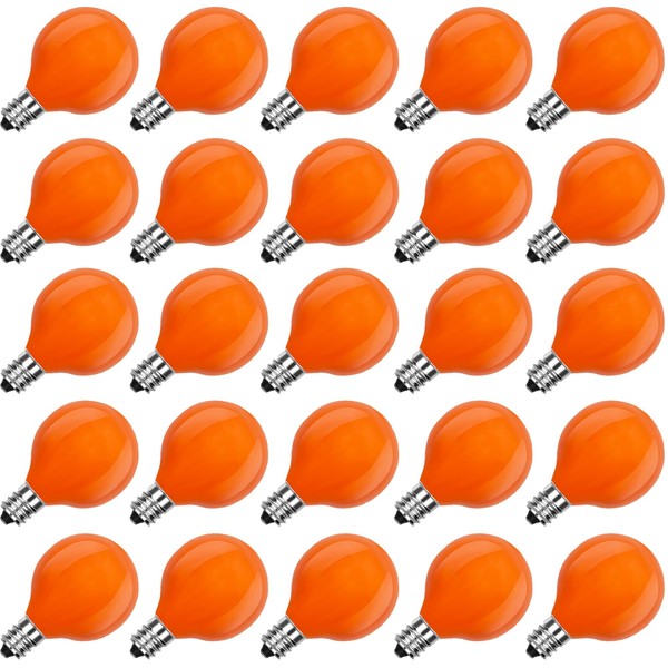 - G40 5W Orange Light Bulbs: 25 Pack Orange replacement edison bulb,G40 replacement halloween light bulbs with E12/C7 Candelabra Base.vintage christmas lights provide 23 lumens of illumination with 2200K warm white light