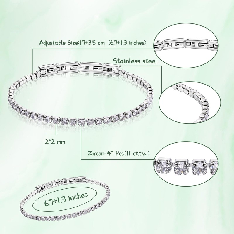 - 💝【 Material 】This bracelet is made of stainless steel and white cubic zircon, and the entire bracelet is studded with zircon, shining brightly. Lead free, nickel free, hypoallergenic, non fading, and does not cause skin to turn green.