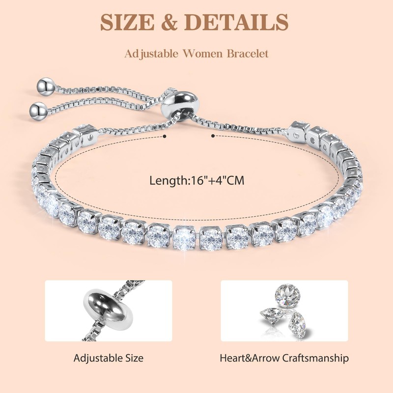 - 【Materials & Size】Made of shiny zirconia and skin-friendly stainless steel, harmless to skin. Hypoallergenic, lead-free and nickel-free. Women's bracelet size is 16cm+4cm, adjustable, suitable for all sizes of wrists.