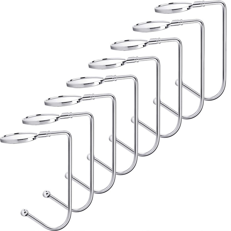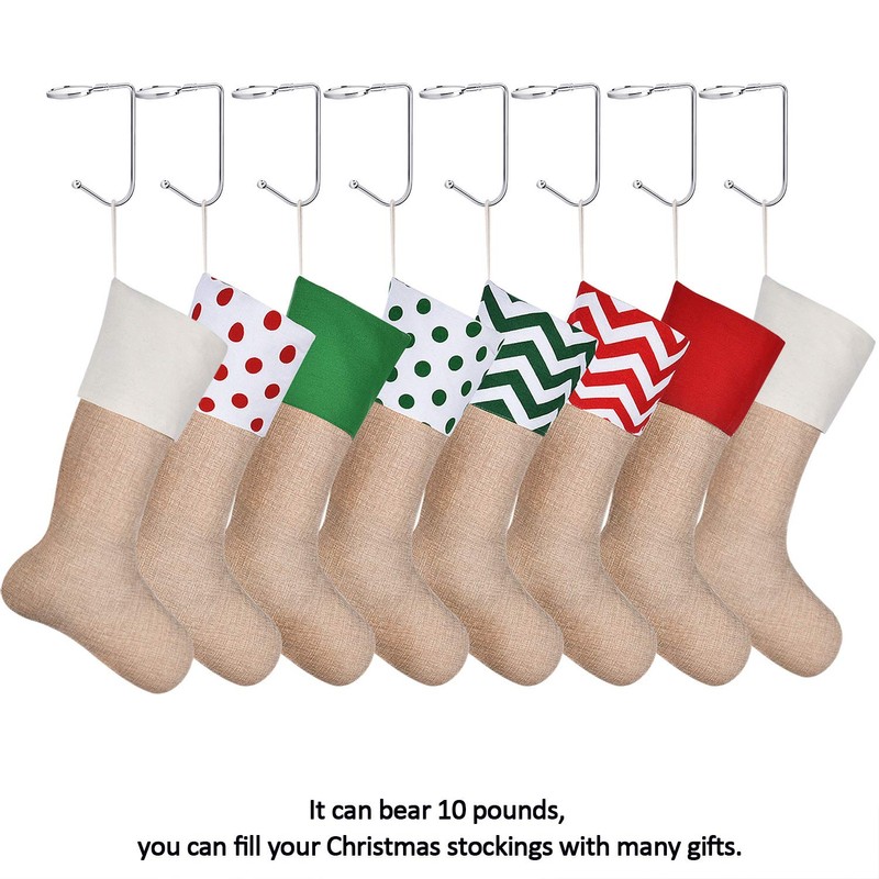 - El paquete incluye: recibirás 8 soportes para calcetines de Navidad, color plateado, que pueden colgar calcetines sin dañar la superficie, ideal como regalo para tu familia y amigos.