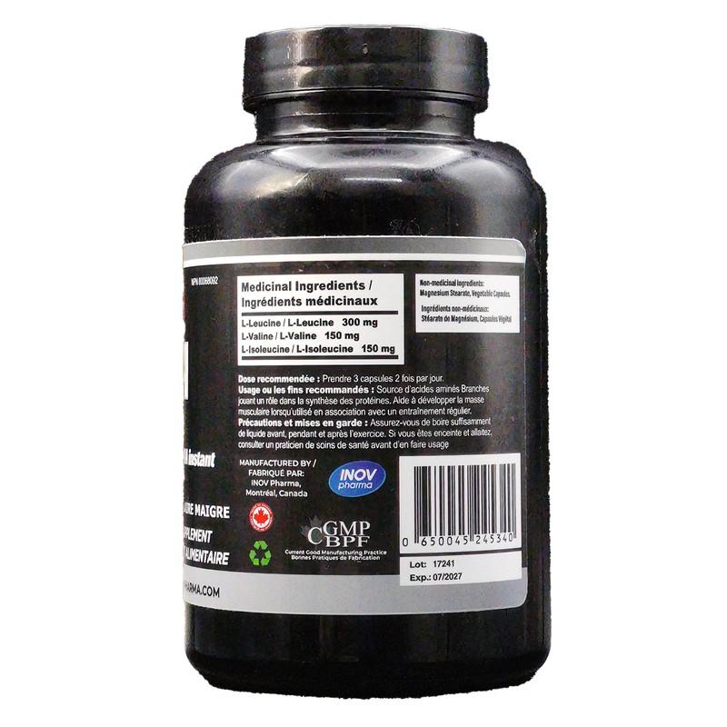 - The Branch Chain Amino Acids (BCAA), L-Leucine, L-Valine, and L-Isoleucine, are supplied in a convenient capsular format, in the preferred 2:1:1 ratio by weight. Each capsule contains 300 mg of L-Leucine, 150 mg of L-Valine, and 150 mg of L-Isoleucine.