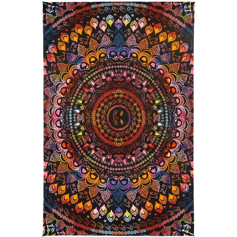 Sunshine Joy 3D Rainbow Cat Tapestry Tie Dye Kitty Mandala Wall Hanging Huge 60x90 Inches