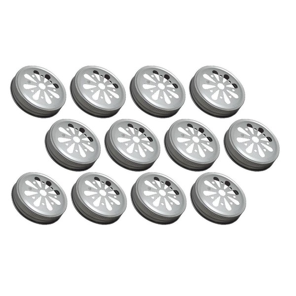 Sunshine Mason Co. Daisy Flower Cut Mason Jar Lids 12 Pieces, Silver