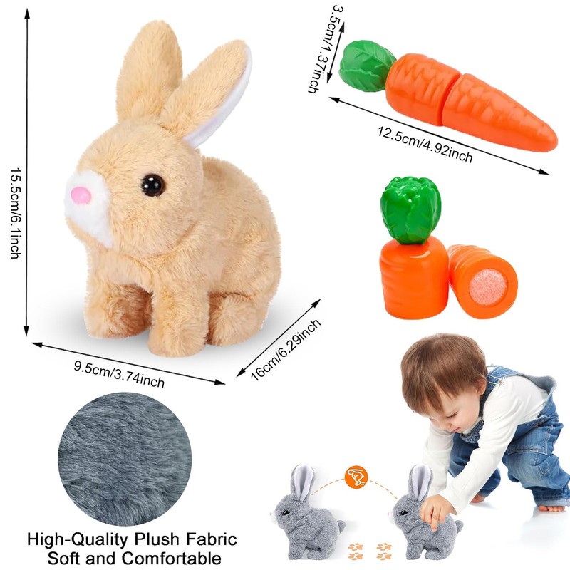 • Emotional accompaniment: the soft look and warm sounds of the stuffed animal rabbit give children comfort and safety and become their faithful companion. It is their secret friend with whom they can spend carefree times
