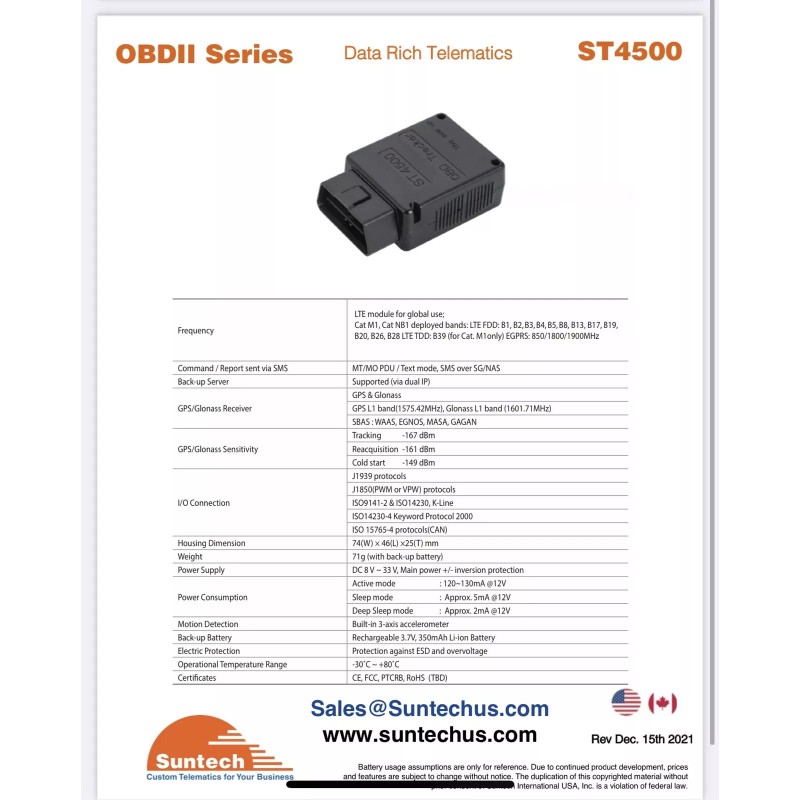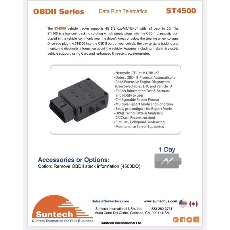 Suntech GPS Plug & Play OBDII Tracker+Servic