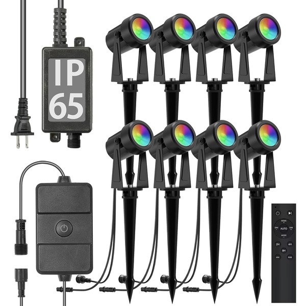 - 【Color Changing Landscape Lighting Effects】With the ability to personalize colors or dynamic effects for each landscape spotlight or the entire set via the remote controller or controllers. Easy to DIY change color/mode of the spotlights. Perfectly decorate your garden, yard, tree, house, enjoy a fantastic outdoor atmosphere.