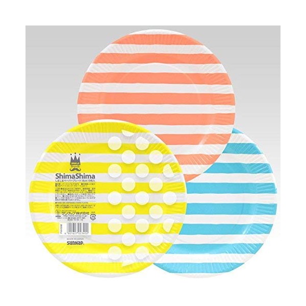 Sunup P1810SIM Shimashima Paper Plate, 7.1 inches (18 cm), 10 Sheets