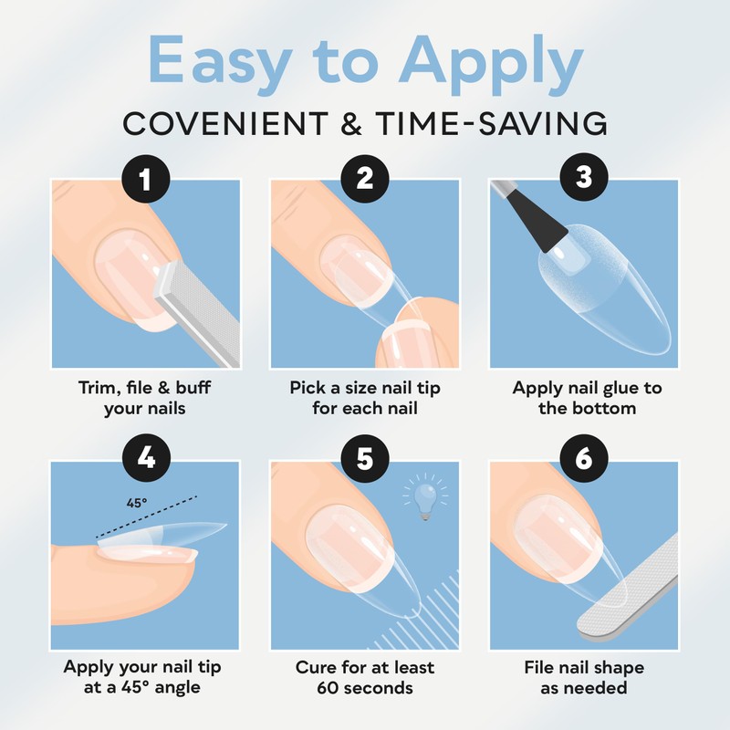 - Apply the nail tip to the top of your natural nail.