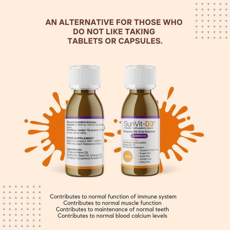 - Your easiest Vitamin D3 partner: SunVit-D3 Vitamin D3 2000IU Oral Solution offers a convenient and effective way to boost your vitamin D levels. Formulated as an orange-flavored liquid, this solution provides a palatable alternative to tablets and capsules.