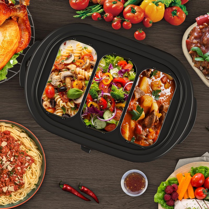 - 3 Efficient Buffet Trays: Our electric roaster oven features 3 separate buffet server trays that let you cook a variety of foods at the same time. After roasting your chicken to perfection, you can use the trays to keep side dishes like mashed potatoes, vegetables, and gravy warm. It simplifies meal prep and adds much convenience to your hosting duties.