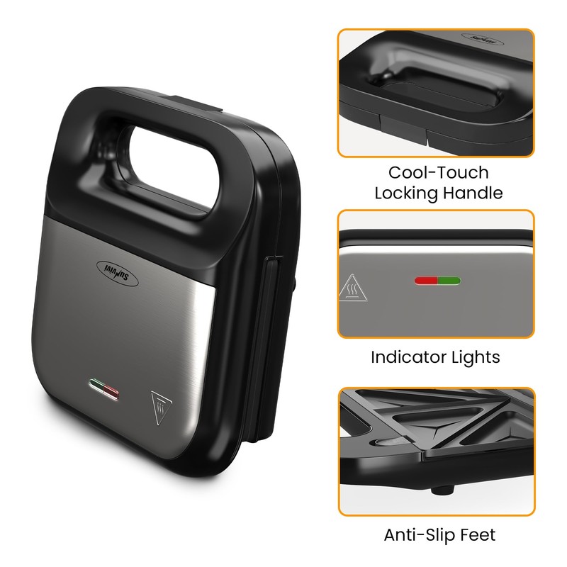 - Time-Saving mornings: Running on 750W, this sandwich maker boasts efficient performance, allowing you to enjoy a freshly made sandwich, omelets, or French toast in just minutes after plugging it in. Save time while indulging in a delightful breakfast, setting the tone for a great day ahead, even for those with hectic schedules.