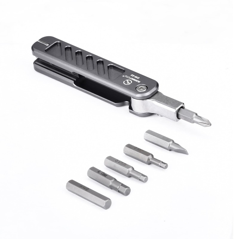 - Equipped with standard hex bits of 2.5mm, 3mm, 4mm and 5mm as well as one cross bit and a flathead screw driver, ideal EDC tool suitable for daily applications; Keychain hole at the end ensures easycarry.