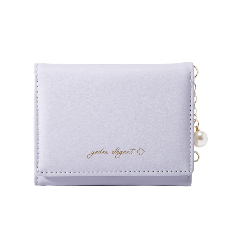 Sunwel Fashion Girls Small Wallet Cute Wallet with Pearl Chain Cash Credit Card Holder ID Window for Women (PURPLE)