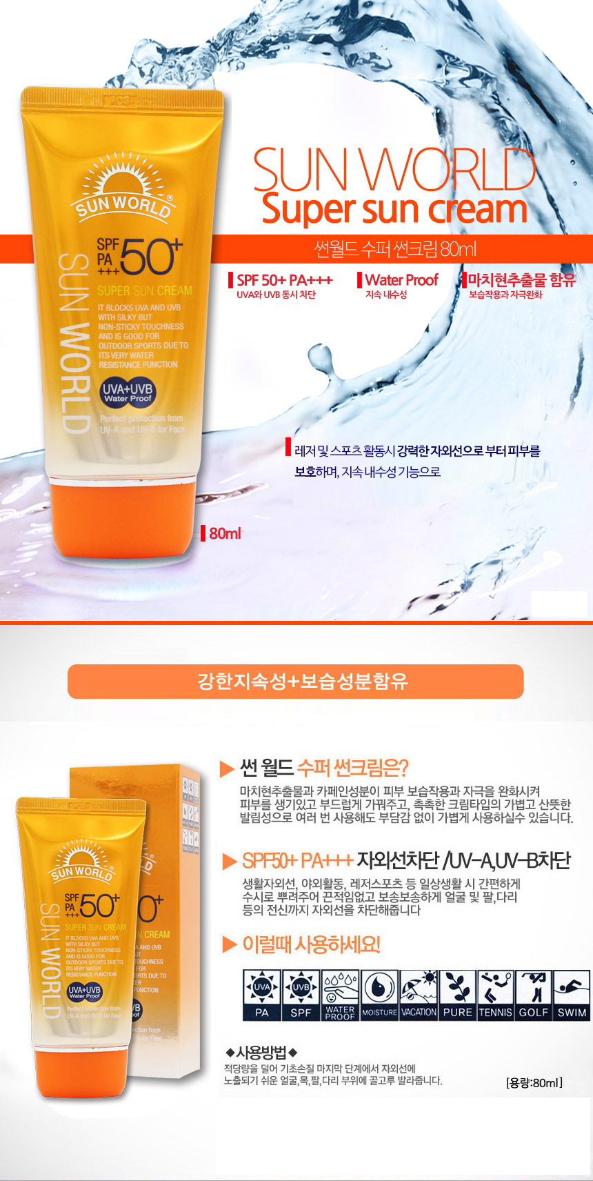 썬월드 수퍼 썬크림 80ml 2개 워터프루프 기능성