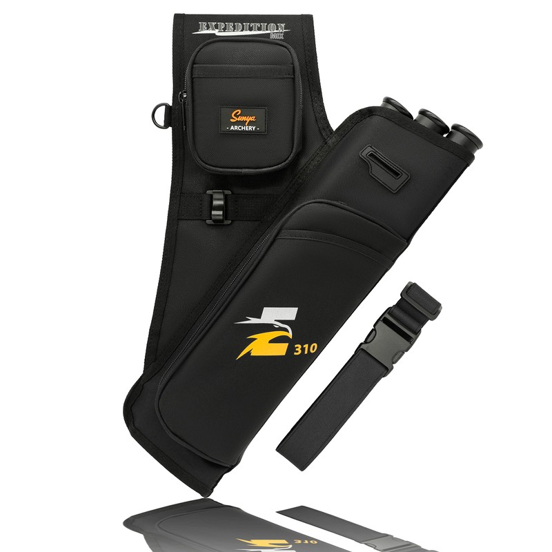 SUNYA Archery Hip Quiver for Arrows. Includes 3 Tubes, Tab and Release Pockets and Nylon Belt. Fit for Target Archery (Black)