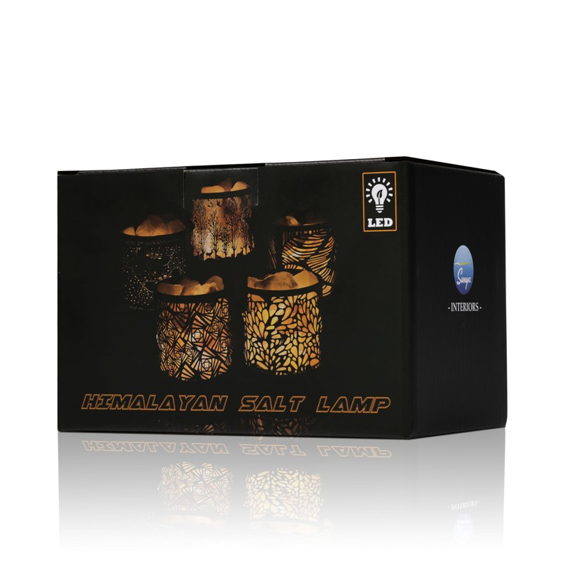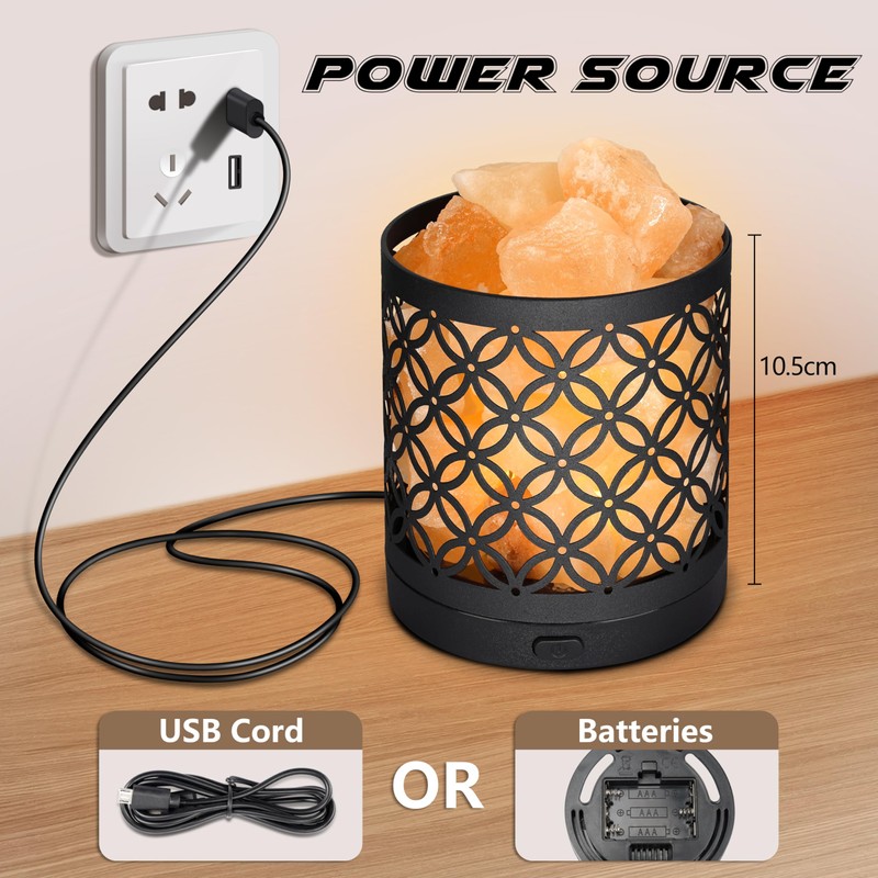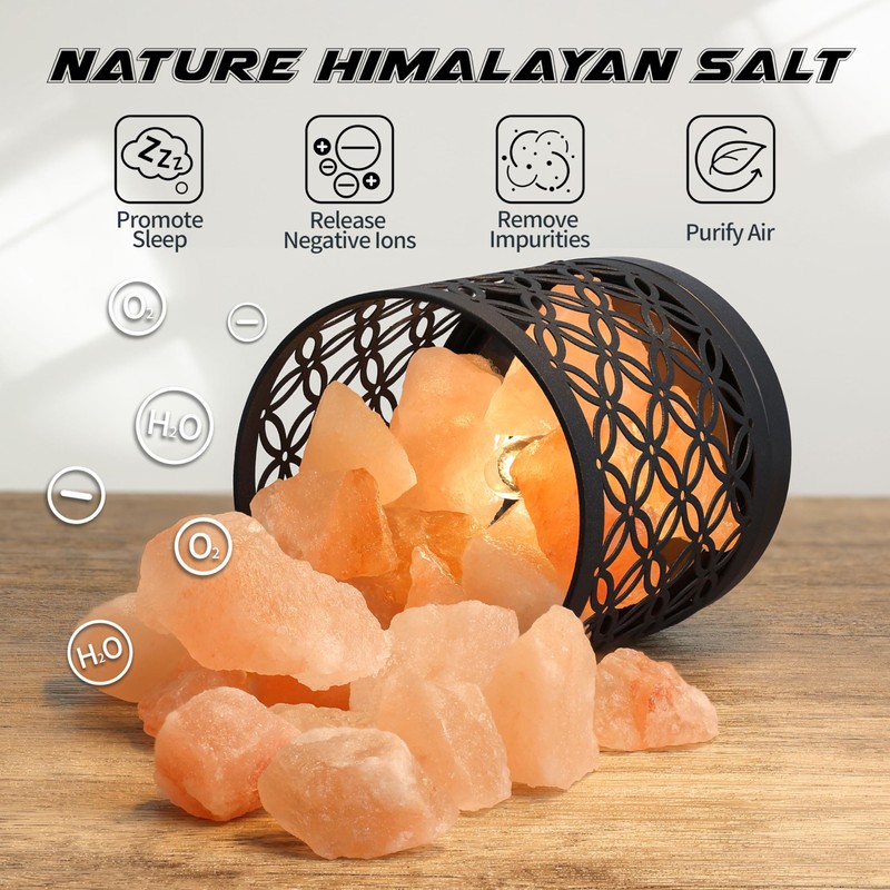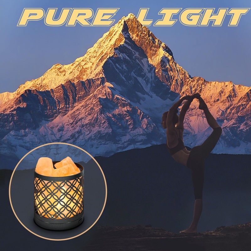 - [Pure and Natura] The ancient Himalayan salt rock is wrapped in a nice crafted steel shell. The pink crystal rock is craved by hand and can be only find in Pakistan. Each of the salt rock has its unique shape. The lamp diffuses a warm glow and fills the room with a healing atmosphere. The low-key but luxurious shape can be used as the best decoration to enhance the atmosphere in various places such as study, bedroom, dining room.