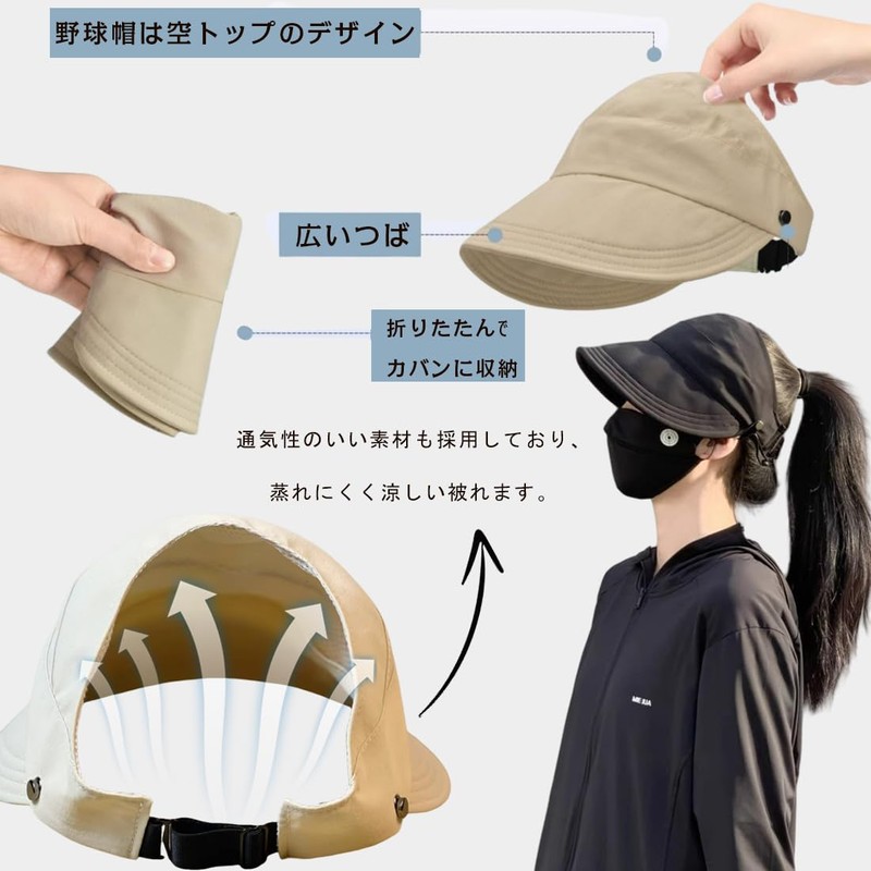 - ◆ The baseball cap has an empty top design, and the buttons on both sides of the hat can be hung on the mask, so there is no pain behind the ears associated with wearing the mask for a long time