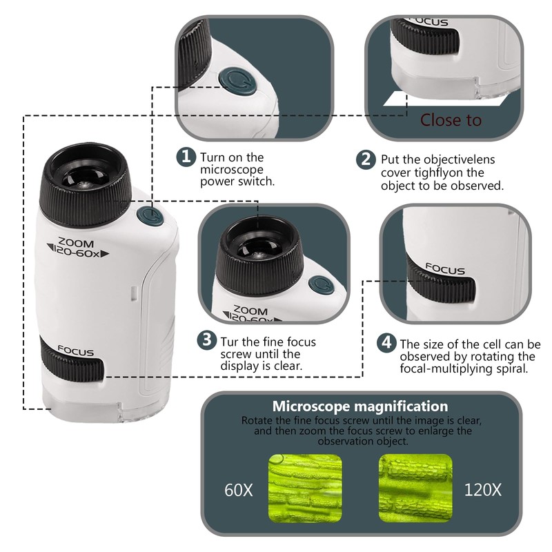 - Easy to Use, Fun for Kids:Designed with young learners in mind, this Mini Microscope for Kids is simple to operate, making it an excellent tool for children to use independently. Its user-friendly design, combined with fun educational value, makes this microscope a great addition to any science kit. Your child will enjoy hours of discovery, exploring the tiny wonders of the world through their own microscope.