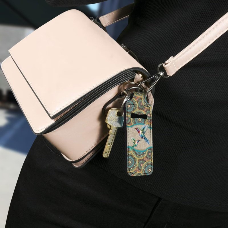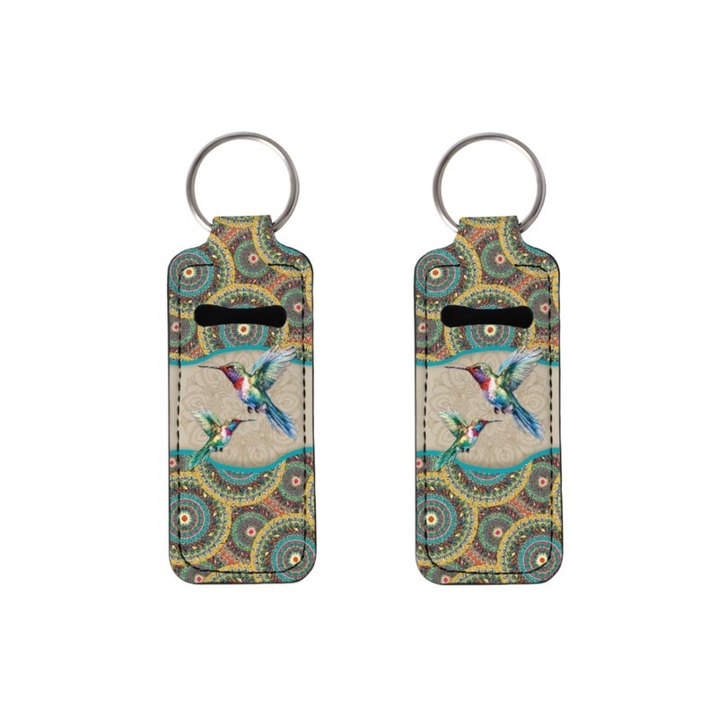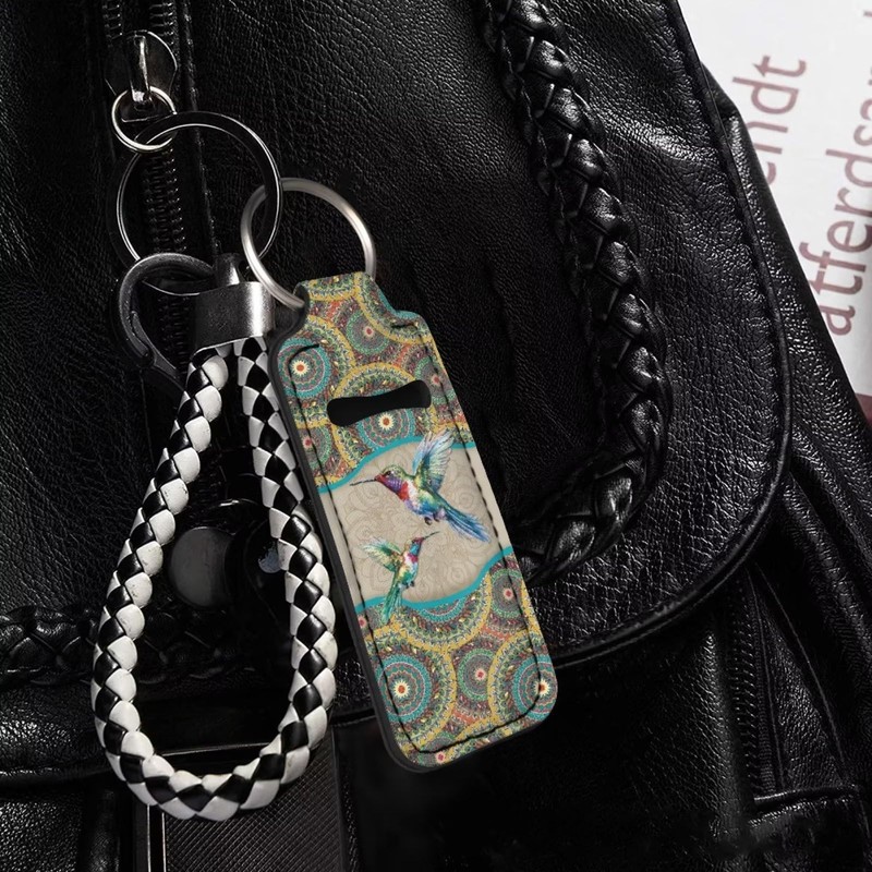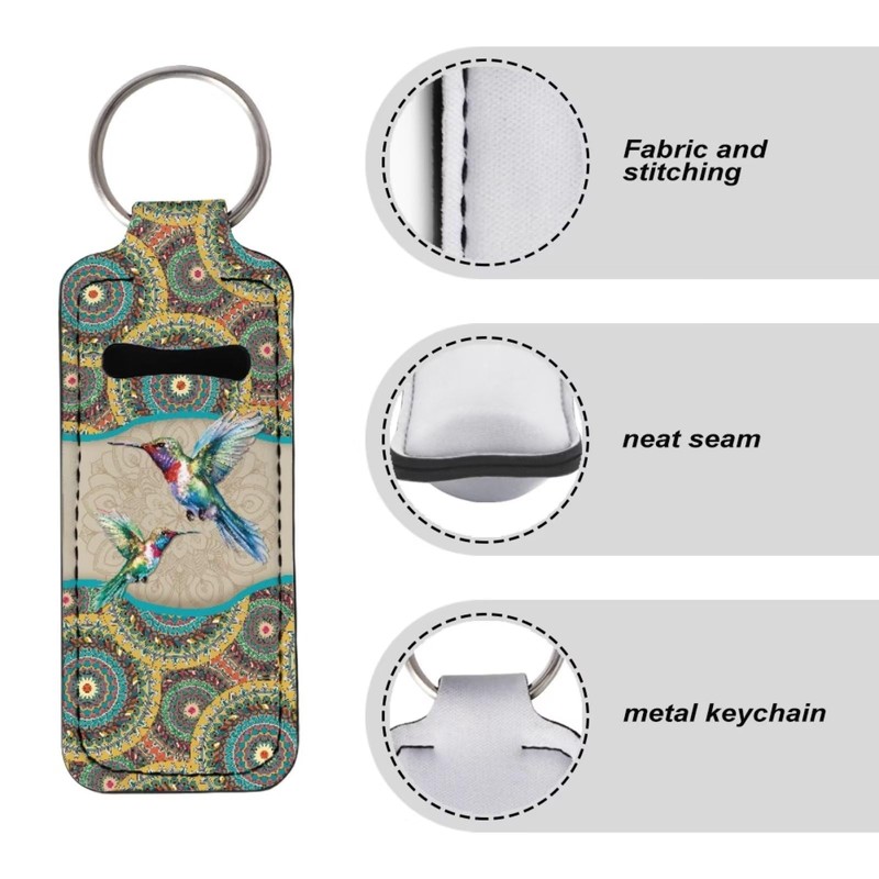 Suobstales Boho Mandala Hummingbird Neoprene Chapstick Holder Lipstick Holder Clip-on Chapstick Sleeve Lip Balm Holder for Lipstick, Lipgloss,Lip Balm Tracker