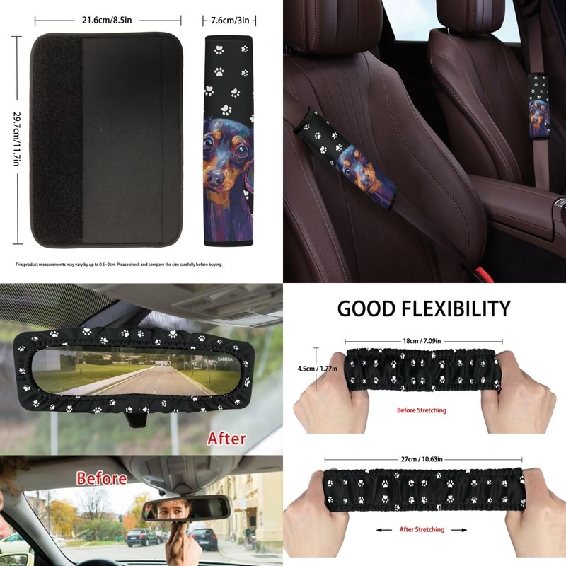 Suobstales Dachshund Paw Print Car Seat Cover Car Accessories Set Steering Wheel Cover Seatbelt Pads Car Trash Can Coasters Rearview Mirror Cover Keychains Auto Interior Decor, Set of 13