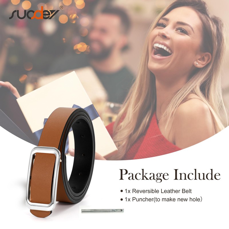 SUOSDEY Women Reversible Leather Belts for Jeans Pants Dresses Ladies Fashion Belts with Silver Buckle