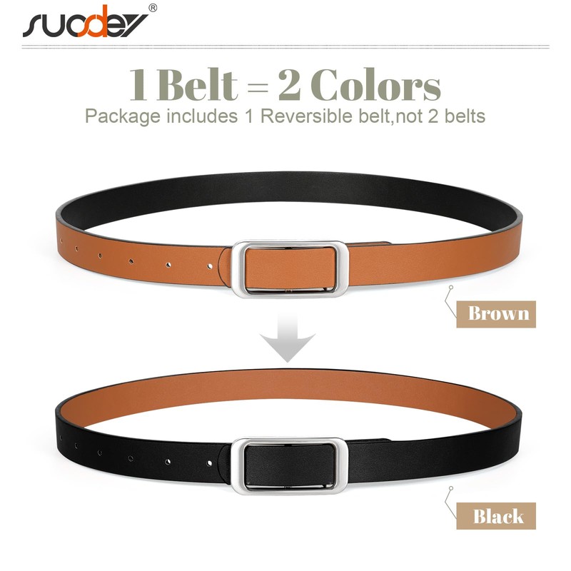 SUOSDEY Women Reversible Leather Belts for Jeans Pants Dresses Ladies Fashion Belts with Silver Buckle