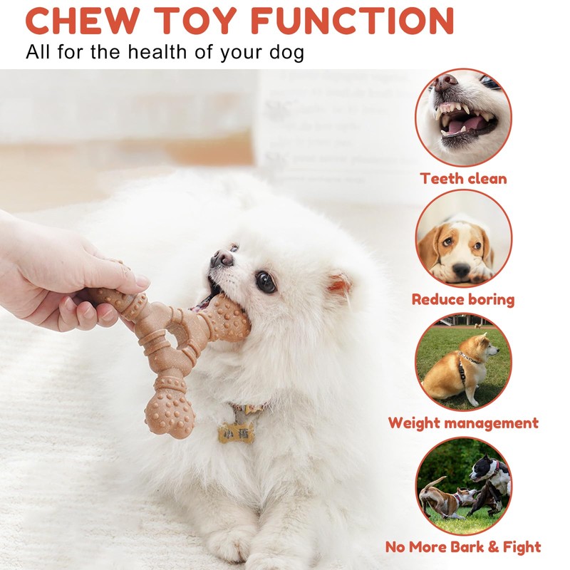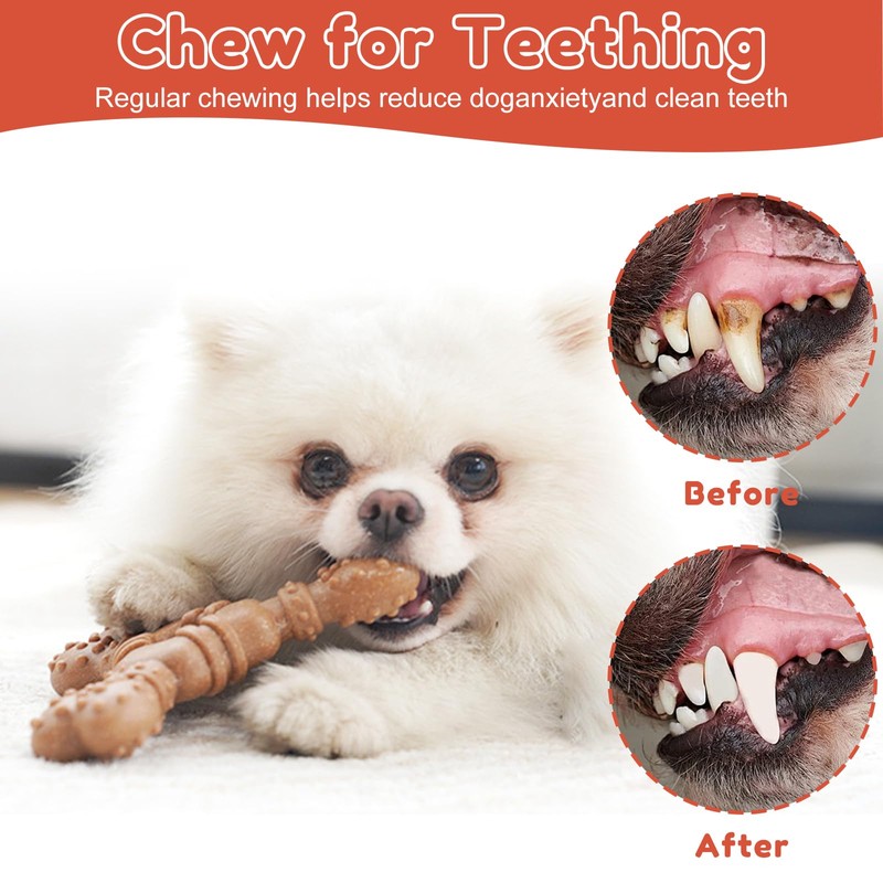 • Dog chew toy: This dog bone chew toy is made from a combination of natural resin and wood fibers, which is safe and durable. Healthy play is crucial to the physical and mental development, emotions and behavior of the dog.