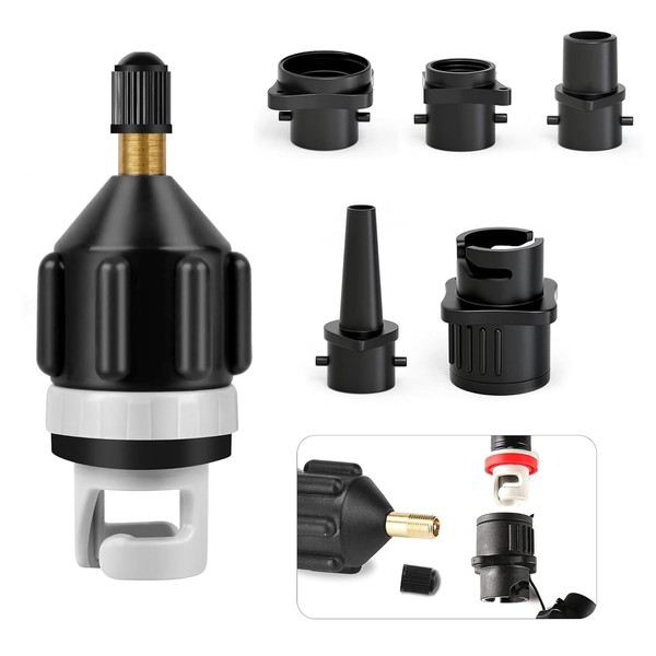 Sup Ventil Adapter Aufblasbarer Adapter, Schlauchboot Ventiladapter mit 4 Stück Gasdüse, Gasdüse Pumpenadapter für Schlauchboote Aufblasbares Bett, Stand Up Paddle Board