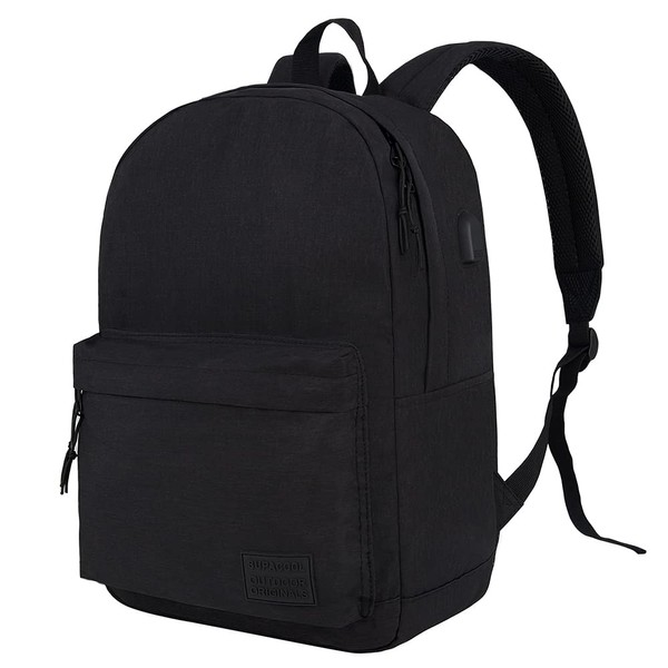SUPACOOL Lightweight Laptop Backpack for School Men and Women, USB Charging Port (black and brown)