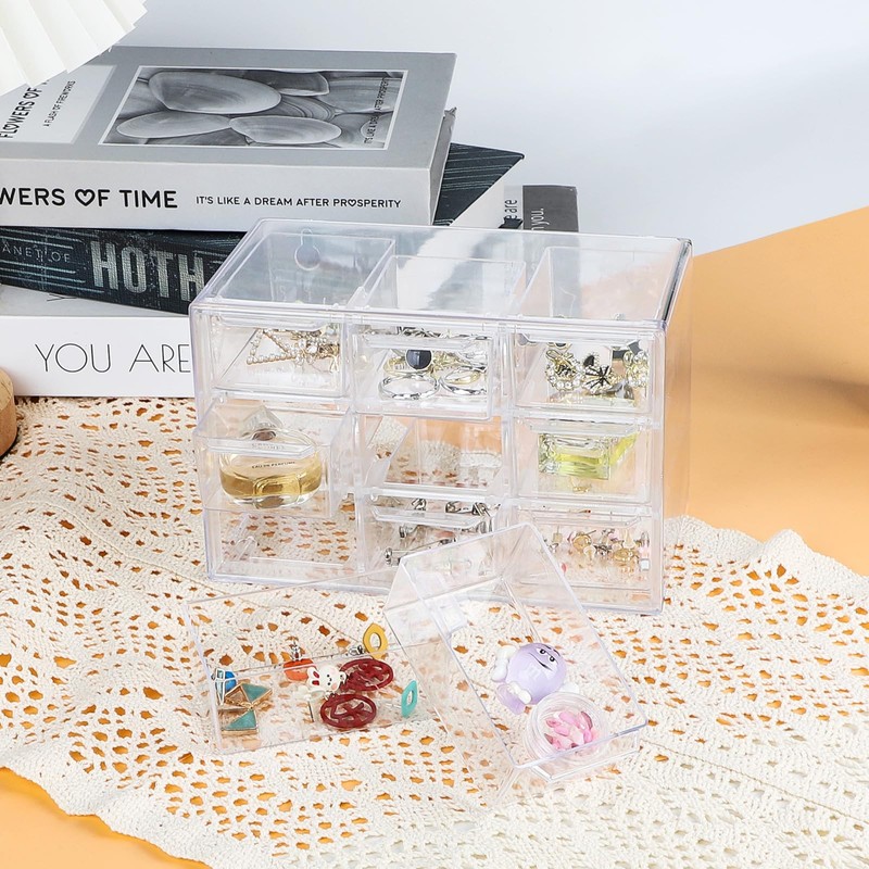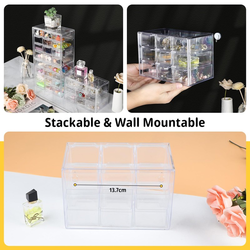 SUPAWAY Acryl Desktop Aufbewahrung Mini Organizer mit 9 Schubladen Klare Desktop Handwerk Schublade Schrank Stapelbare Desktop Aufbewahrungsbox fĂŒr Kosmetik Schmuck Schreibwaren (18x10x12cm)