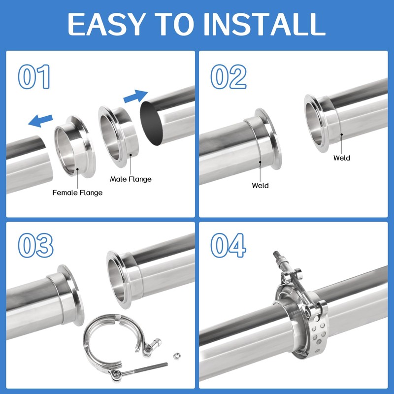 - EASY TO INSTALL All sizes of male and female flanges are sealed without gaskets to ensure correct alignment of the flanges within the clamp for easy installation