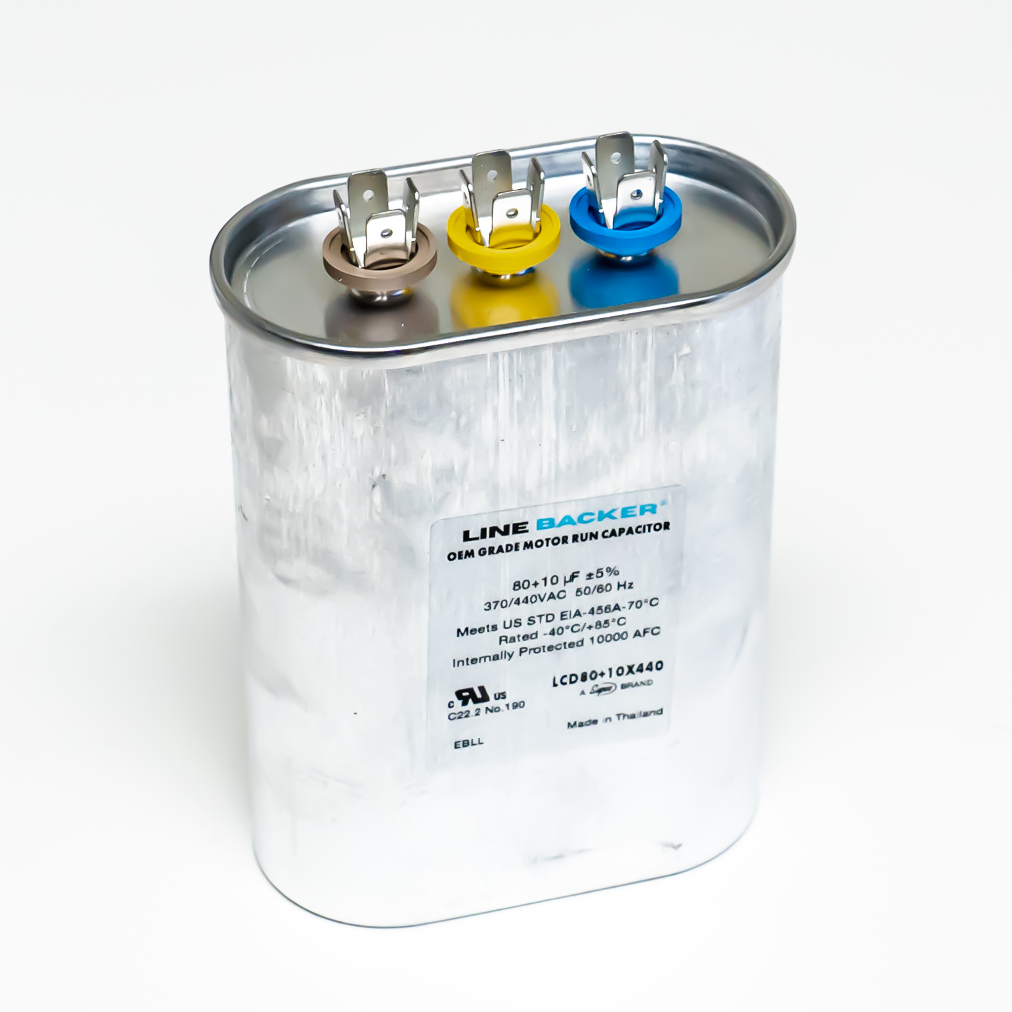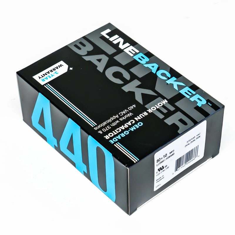 Linebacker Motor Run Capacitors are built for longevity and performance. Engineered by an ISO certified manufacture with over twenty years experience in OEM capacitor fabrication. Linebacker capacitors come off the same production line as the OEM, and are 100% in-line production tested to the same rigorous international standards. Linebacker capacitors are manufactured with thick polypropylene foil to handle increased operating temperatures.