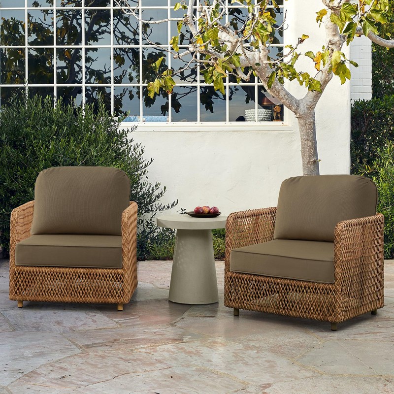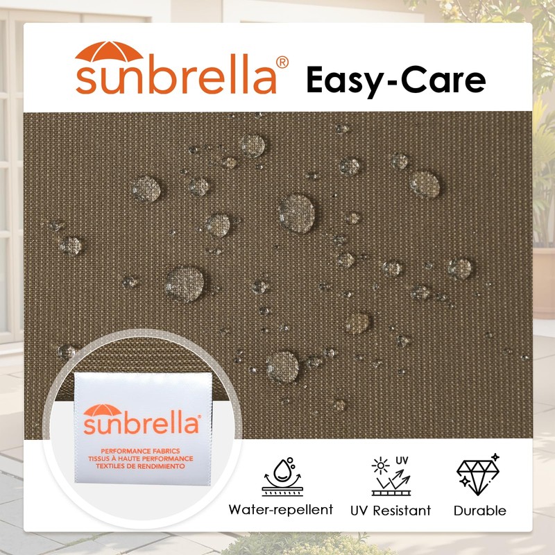 - Durable Sunbrella fabric: The cushion is crafted with Sunbrella fabric, has a subtle texture, and is designed for durability. It is resistant to stains, water, pilling, and abrasion.