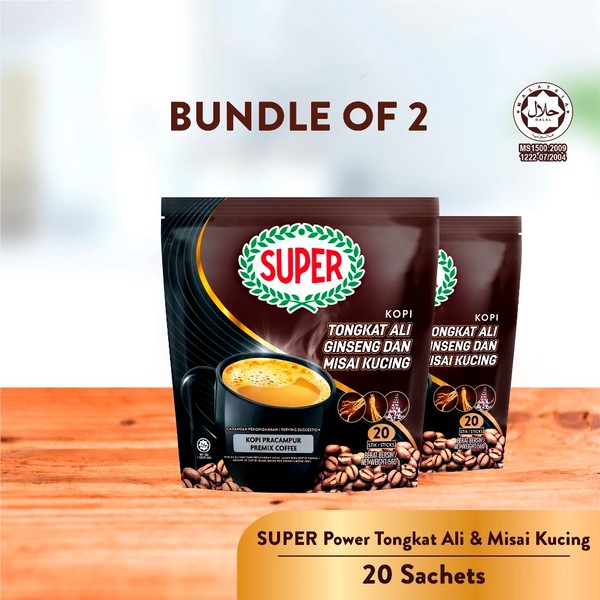 The (Bundle of 2) Super Power 6-In-1 Coffee with Tongkat Ali offers a convenient and powerful instant coffee experience. Each stick contains a flavorful blend of TA Ginseng, providing a unique and healthy option for coffee lovers. With a medium roast and 80 calories per serving, this coffee is perfect for those looking for a high-quality, halal-certified beverage. Enjoy the rich and aromatic taste of this Asian-inspired coffee, sourced from Malaysia and packaged for easy consumption.