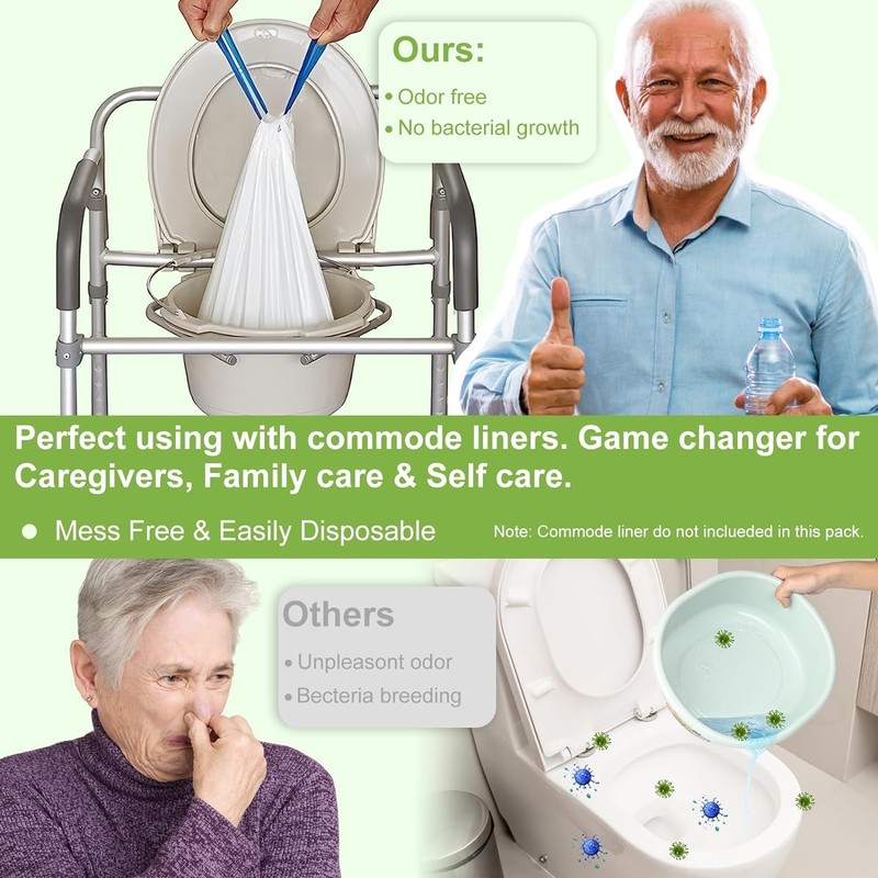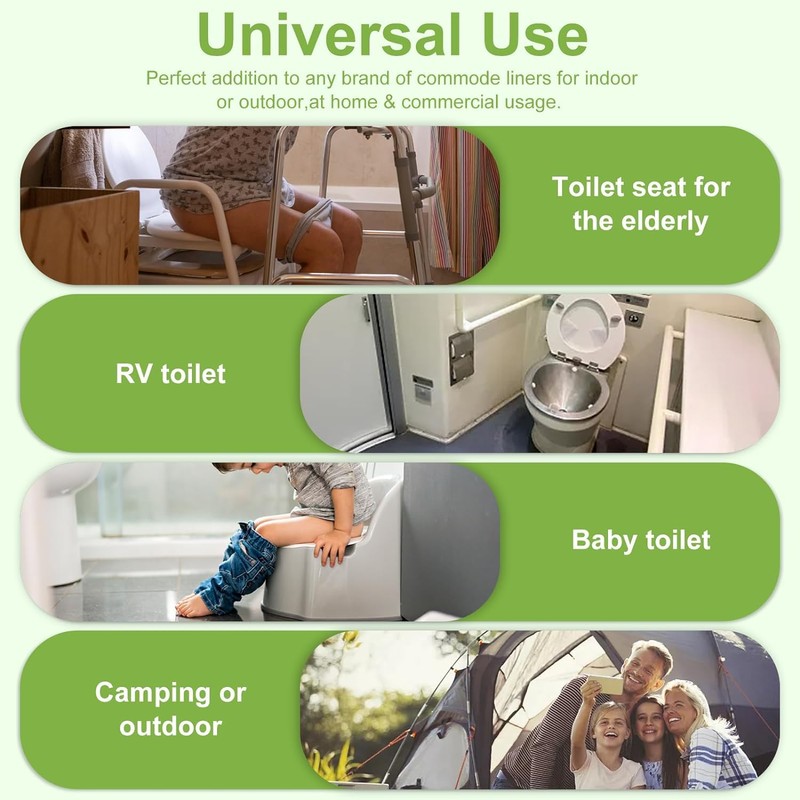 - Widely Used. For various bag liners bedside commode, Leakproof and Odor-free, it is easy for nursing Seniors Disabled, or Camping. A must essential item for RV trips or living in a vehicle