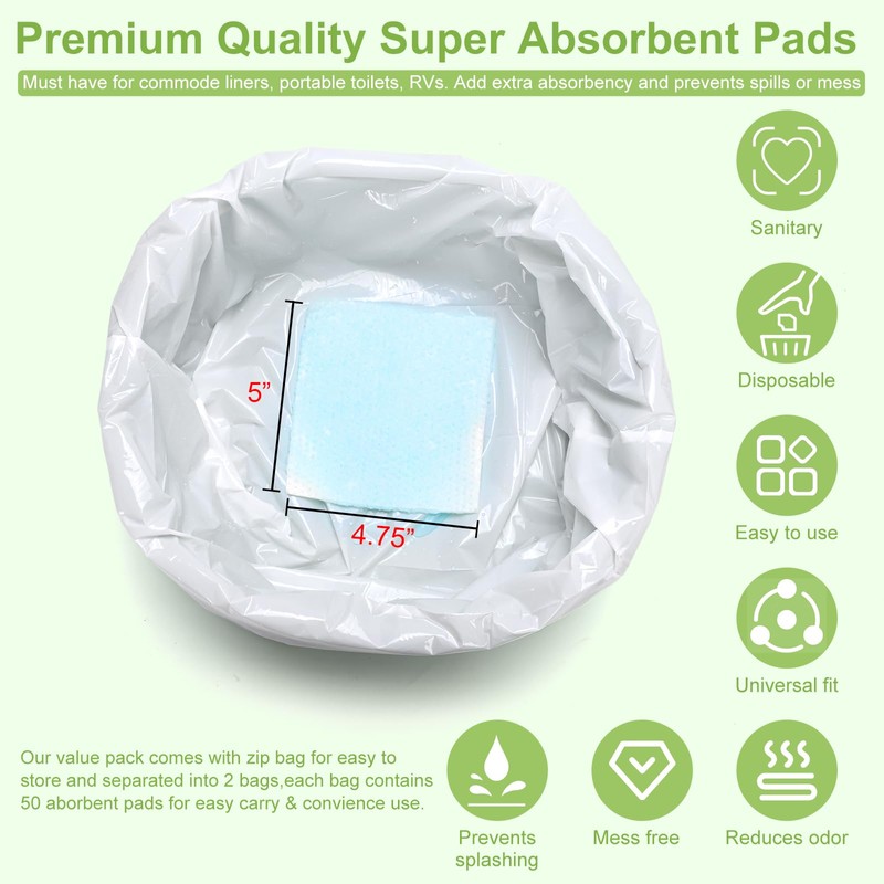 - Best Value Pack. 200pcs thick absorbent commode pads are great for liquid or urine absorption, odor control, spills, and splatters, making clean-up a breeze. It makes the lives of caregivers, seniors, or the Disabled so much easier and better