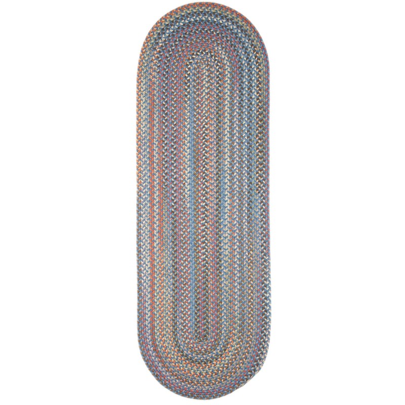 Super Area Rugs Cherry Hill Braided Rug Soft Toned Wool Casual Braided Carpet, Bluestone Multi, 2' x 6' Oval Runner