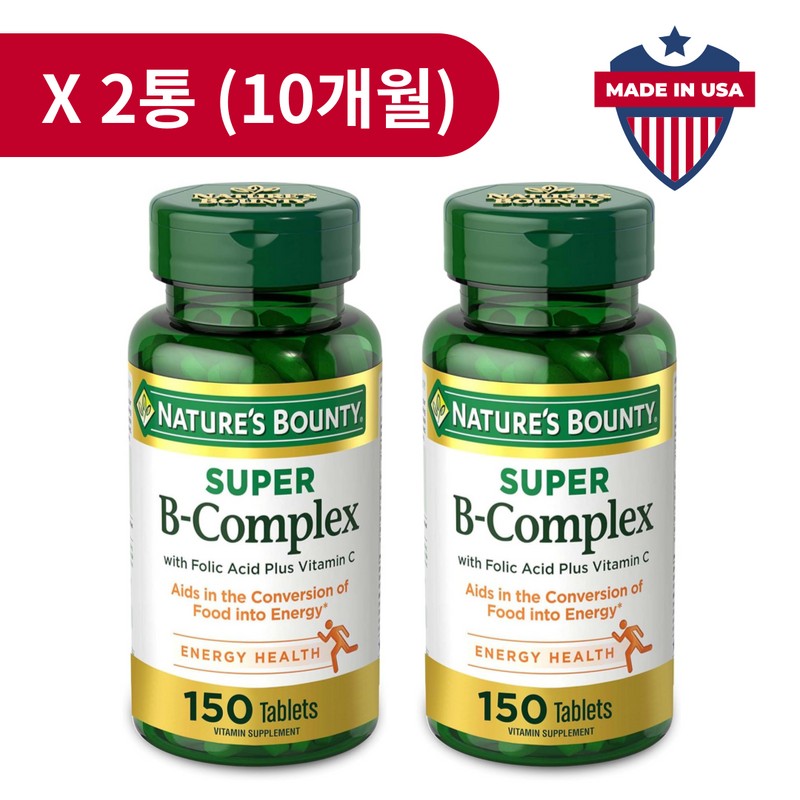 에너지용: 150개 코팅 정제; 엽산과 비타민 C가 함유된 자연의 현상금 슈퍼 B 복합체는 신체의 에너지 대사에 중요한 역할을 합니다. 신체가 음식을 에너지를 유지하는 데 사용되는 연료로 전환하도록 돕습니다.