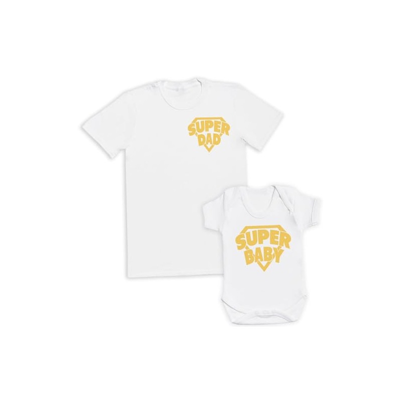 Super Baby Baby Gift Set - Set of 2 - Father & Baby Kids Matching Set - Dad & Baby - Gift for Daddy Him Dad White