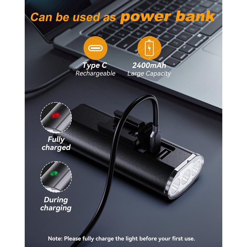 - Wide Range of Applications: Perfect for cycling, hiking, running, camping, walking pets, commuting, and mountain biking. Bike lights double as a portable power bank, keeping you powered during your adventures. Additionally, mountain bike light function as an emergency flashlight, offering peace of mind on the go
