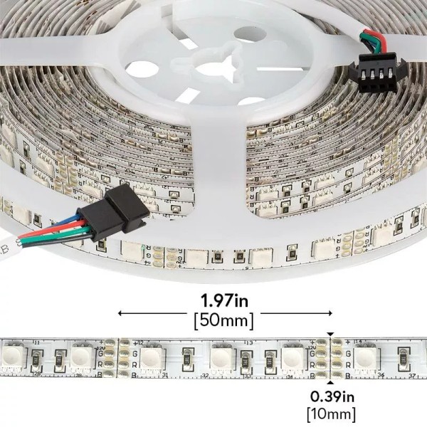Super Bright LED RGB LED Strip Lights - 12V LED Tape Light w/ LC4 Connector - 16 ft - 5M (SBL)