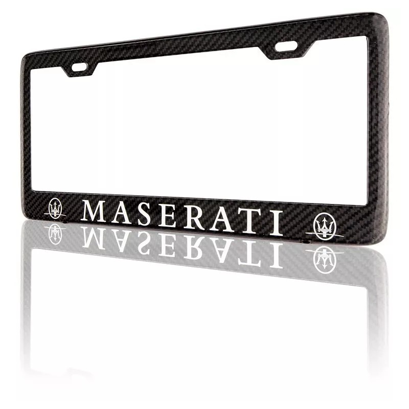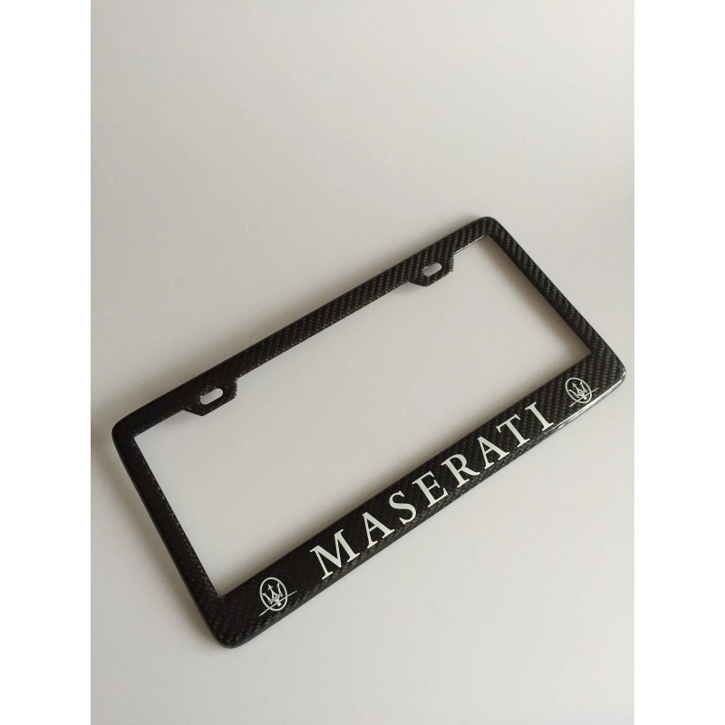 Real Carbon Fiber License Plate frame with Maserati wording and flag logo