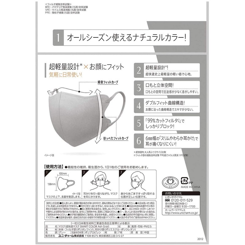 Super Comfortable Mask, Smart Color, Ash Gray, Regular, 7 Masks, Bulk Purchase Set