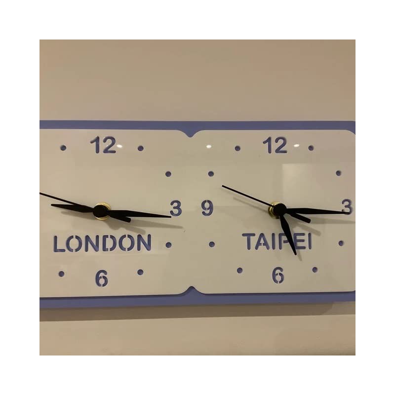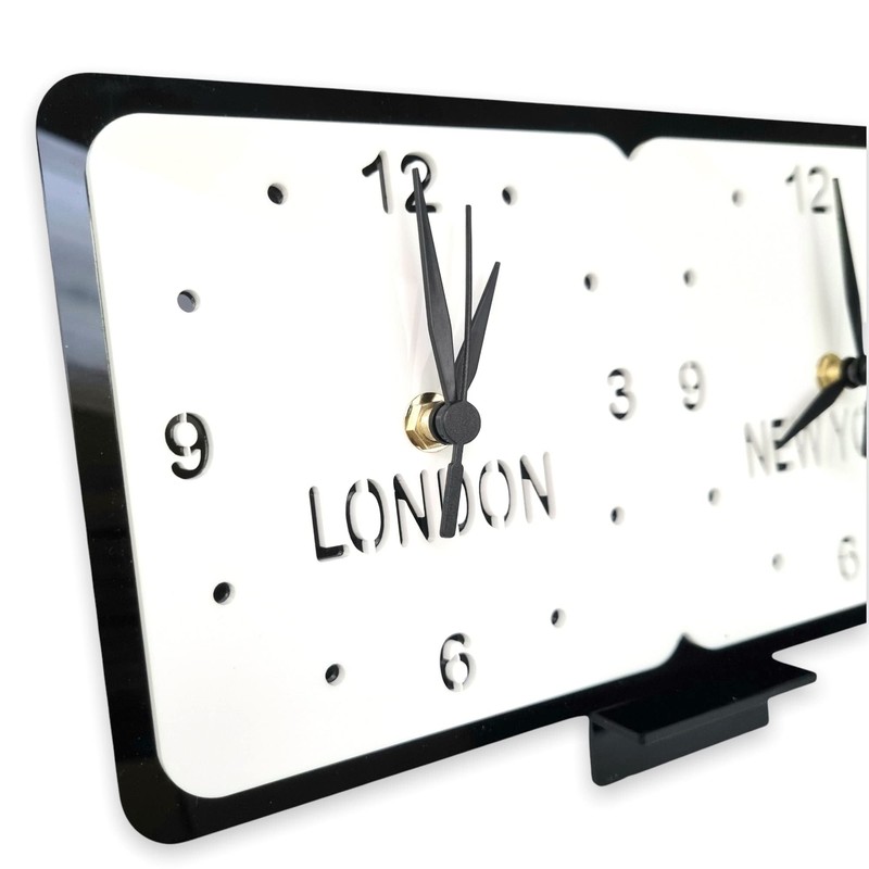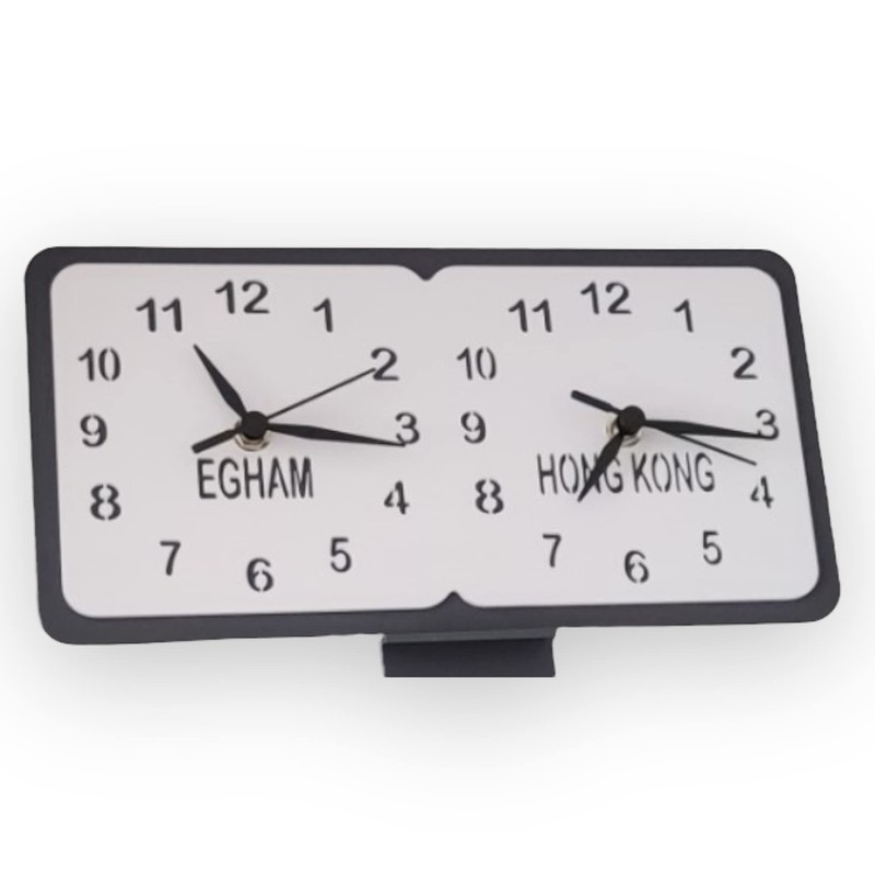 Super Cool Creations Bespoke Named Two Square Time Zone Clocks & Desk Stand (Many Matt Colour Choices) 30cm x 15.5cm (Midnight Black Matt Back/Moonlight White Matt Front)