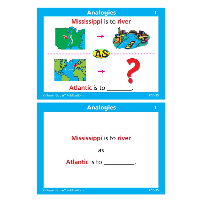 Each set of themed game boards represents one of the categories in Vocabulary Chipper Chat. The game boards present countless opportunities for your children to practice the vocabulary and language skills. Use the vocabulary prompt cards without the game boards and have children create new sentence prompts, analogies, or categories, etc. for endless extension activities.