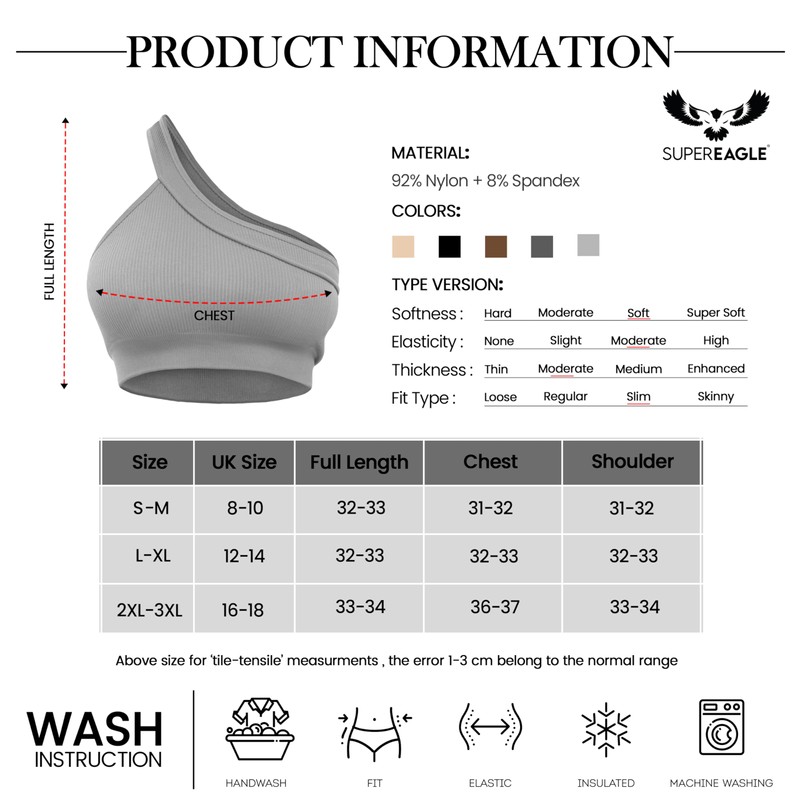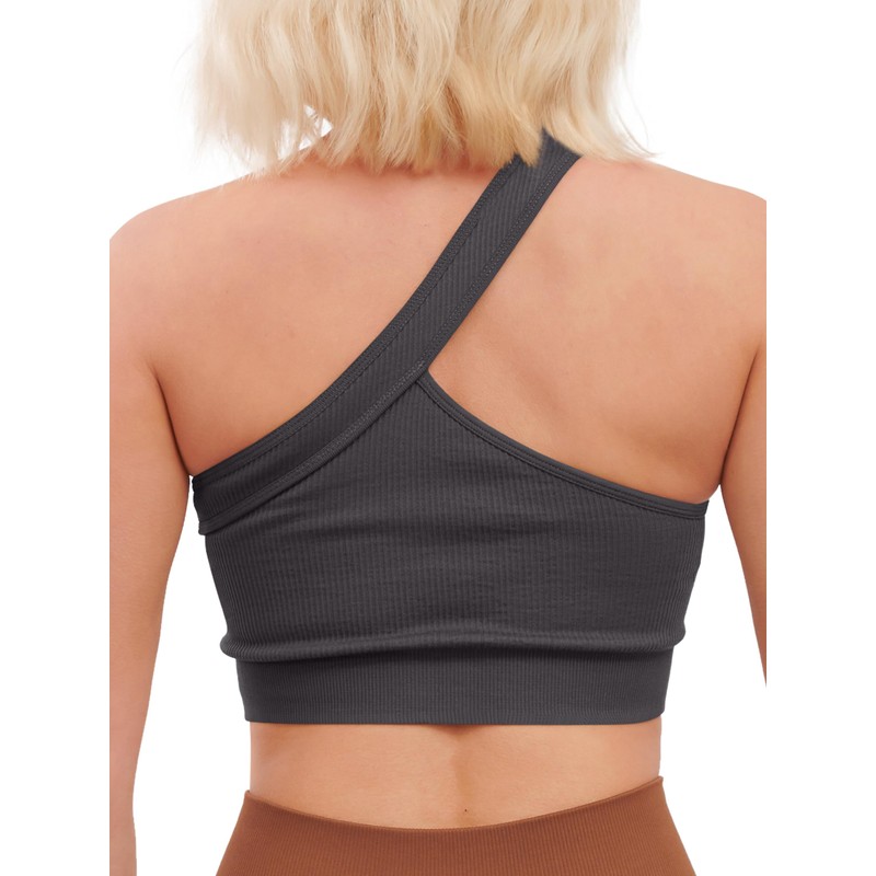 Super Eagle® One Shoulder Sports Bra for Women High Impact Bra Seamless Crop Top Bralettes Thin Padded Comfort Sport Wirefree Push up Bra Gym Yoga Running Dark Grey