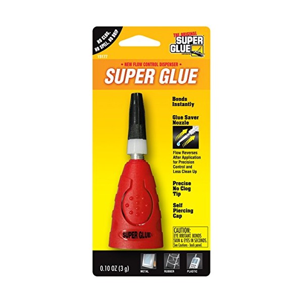 Super Glue Flow Control Dispenser, 0.10 oz - Heavy Duty, Strong Glue for Plastic, Wood, Rubber, Ceramic Repair, and More