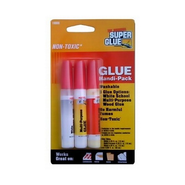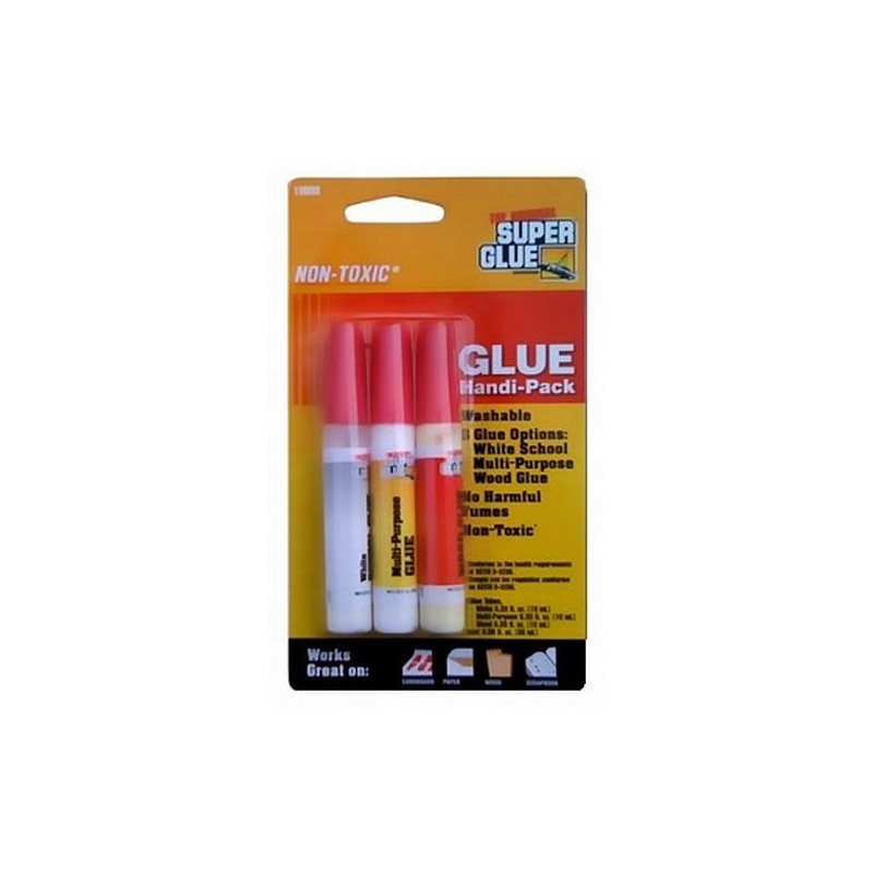 Super Glue Handi-Pack - Contains 3 easy-to-use glue tubes for school, home and office use. Each water-based formula is washable and non-toxic.