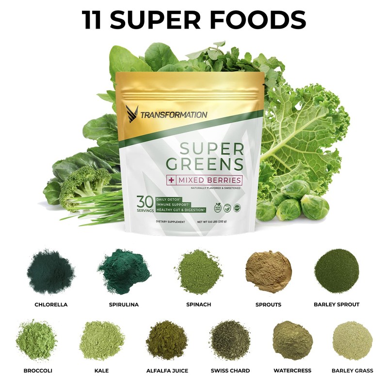 Transformation Super Greens Superfood Green Juice Powder - Immune & Energy Support | Natural Ingredients | Detoxifying & Alkalizing Minerals - Spirulina, Chlorella, Wheatgrass, Spinach, Alfalfa